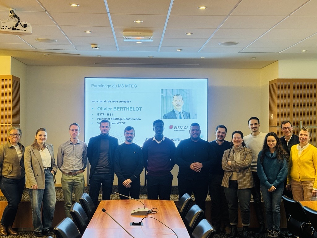 La 12ème promotion du Mastère spécialisé® Management et Techniques en Entreprise Générale (MTEG) a démarré le 12 janvier dernier sous le parrainage et en présence d’Olivier BERTHELOT, Président d’Eiffage Construction.
