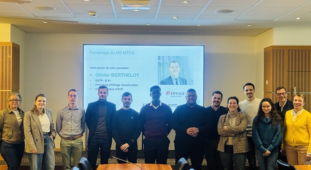 La 12ème promotion du Mastère spécialisé® Management et Techniques en Entreprise Générale (MTEG) a démarré le 12 janvier dernier sous le parrainage et en présence d’Olivier BERTHELOT, Président d’Eiffage Construction.