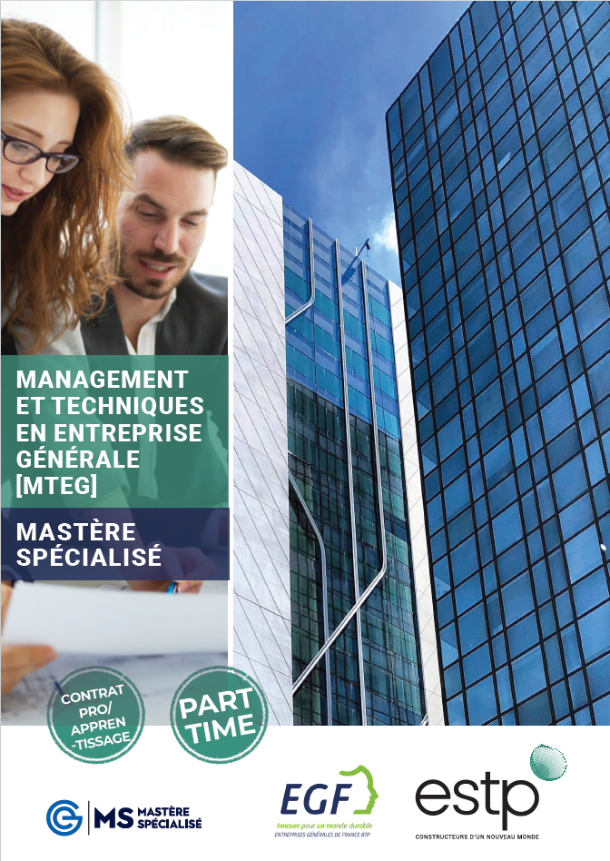 Le programme du Mastère spécialisé® « Management et Techniques en Entreprise générale » a été élaboré et évolue en lien avec des professionnels d’EGF sous la conduite de l’ESTP depuis 2012. Il suit le déroulement chronologique d’une opération de construction de sa genèse à l’exploitation. L’enseignement est assuré par une équipe de 70 professionnels et experts de haut niveau, ce qui est un point fort et remarquable dans la pédagogie de la formation.Concrètement, le mastère spécialisé® se déroule sur 12 mois, à raison d’une semaine de formation par mois en alternance avec l’exercice du métier en entreprise.